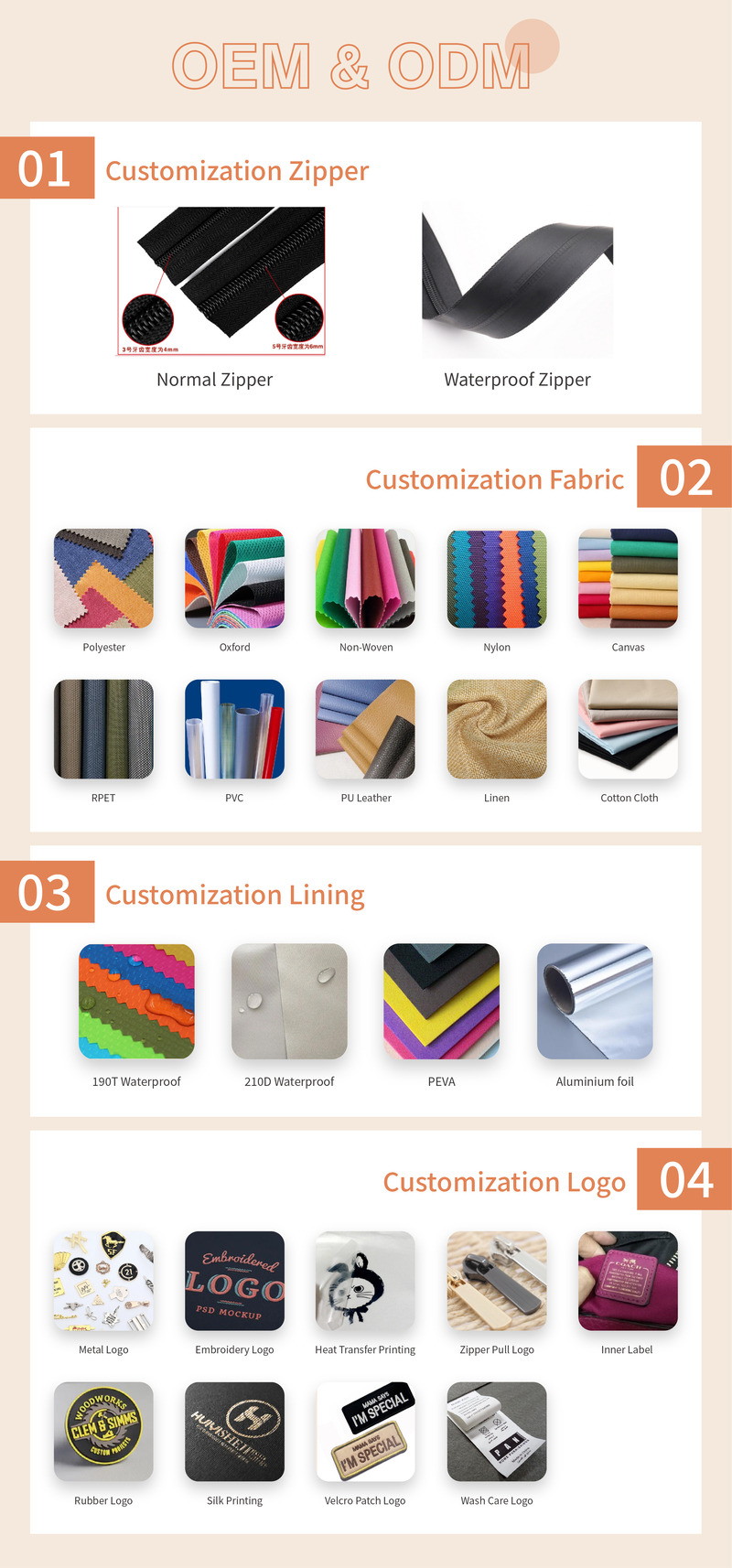 Oui, la taille, la couleur, les séparateurs, les logos et les bandes réfléchissantes sont tous personnalisables pour les commandes d'entreprise.