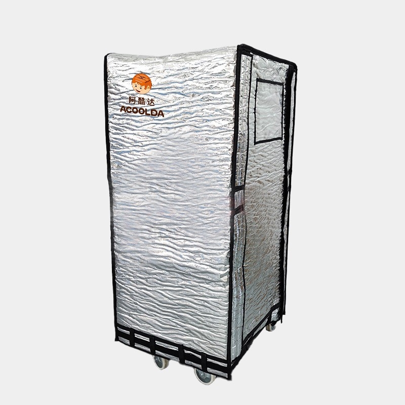 Roll-conteneur logistique isotherme double température avec bâche thermique de 6 à 8 mm. Conservation du froid pendant 4 à 6 heures. Solution de stockage du froid B2B personnalisable pour l'entreposage et la livraison mobile.