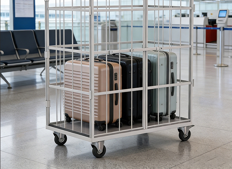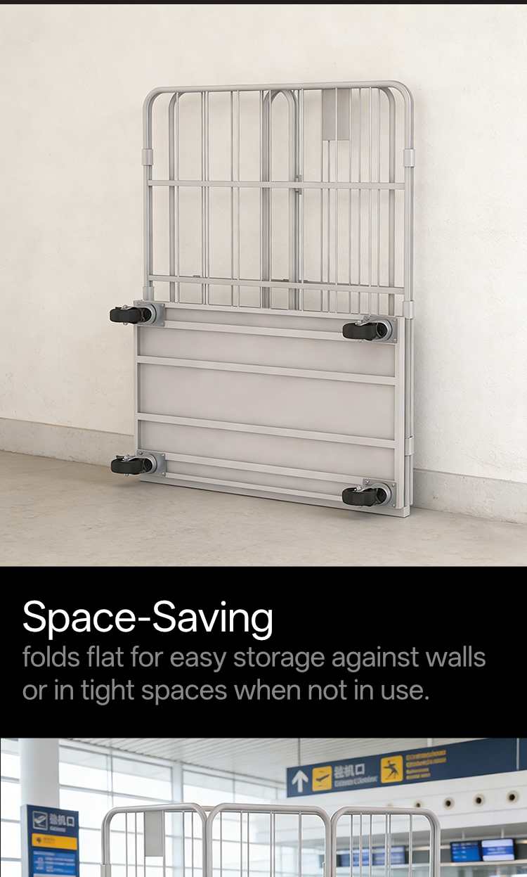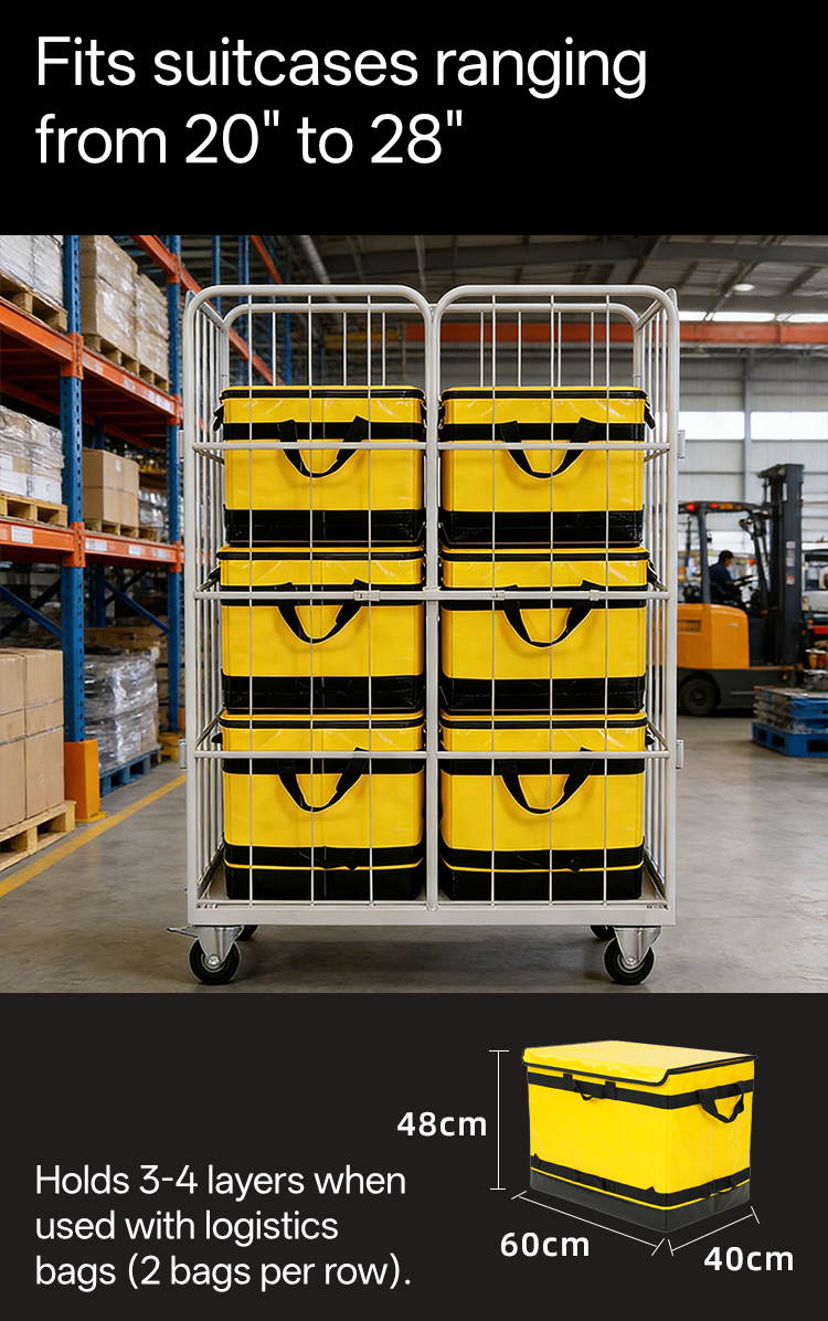 Le WL-RC-004 est une cage à roulettes compacte et pliable de 1700 mm de haut, optimisée pour le tri des bagages dans les aéroports et le commerce de détail, offrant un stockage haute densité et une personnalisation B2B de DeliverKingdom.