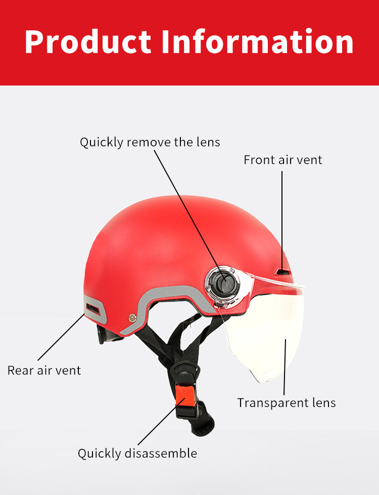 Notre demi-casque premium avec visière est spécialement conçu pour les livreurs de repas, les flottes logistiques et les services de coursiers. Il allie sécurité, confort et image de marque pour répondre aux besoins des entreprises du monde entier. Forts de plus de 10 ans d'expérience dans la fabrication, nous proposons des casques personnalisables en couleur, taille et logo, parfaits pour les commandes d'entreprise importantes, avec une livraison rapide et une qualité constante.