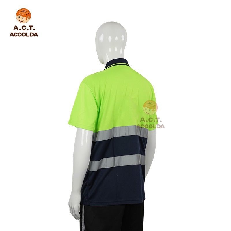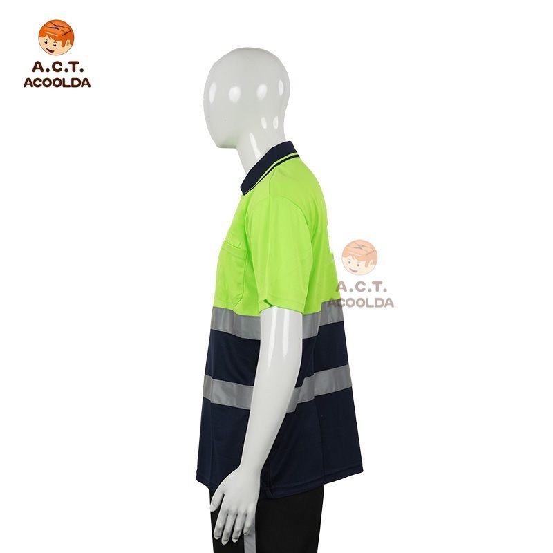 Ce polo à manches courtes avec bandes réfléchissantes est conçu pour les livreurs, les coursiers et le personnel logistique travaillant sous la chaleur estivale. Doté de deux bandes réfléchissantes horizontales autour de la taille, il assure une visibilité optimale dans les environnements peu éclairés tout en préservant une apparence professionnelle. Fabriqué dans un tissu léger et respirant, il assure fraîcheur et confort aux travailleurs tout au long de la journée. Grâce à ses options de personnalisation complètes (logo, couleur et taille), il est idéal pour les uniformes d'entreprise, les commandes en gros et les projets OEM/ODM.